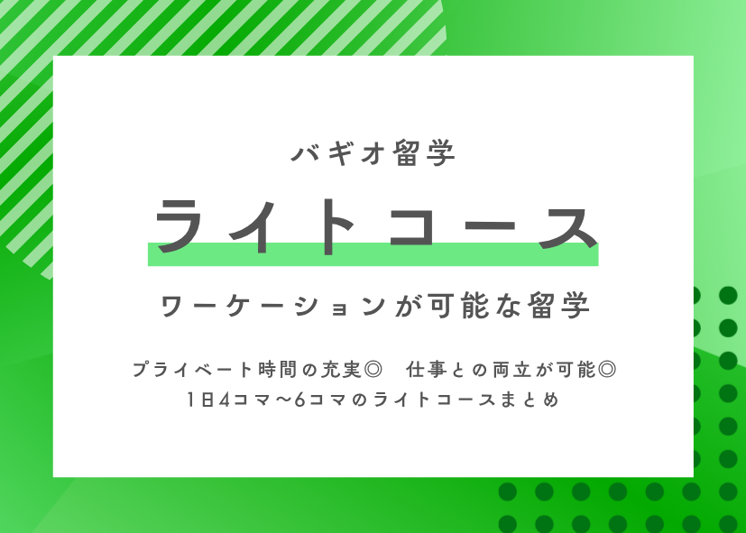 【コース】ワーケーションにおすすめ!バギオ語学学校のライトコース比較!