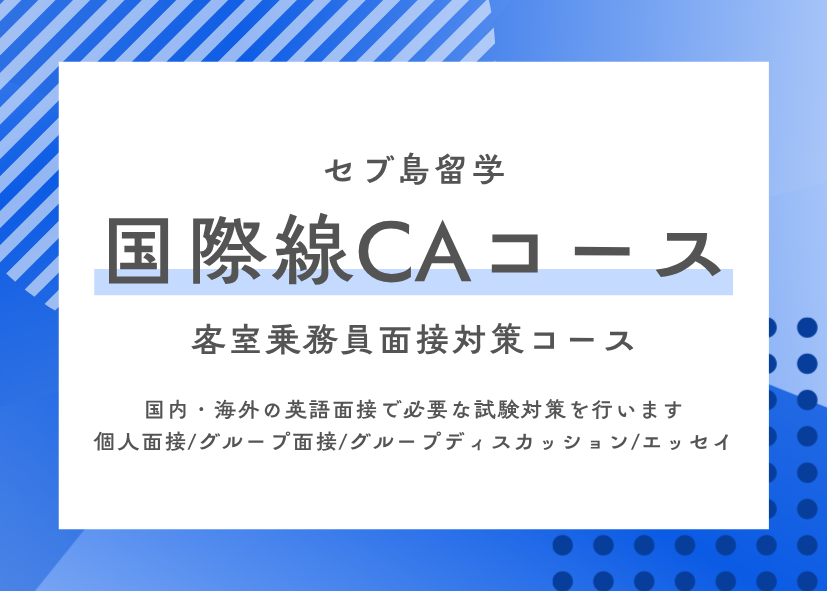 【コース】セブ島留学の国際線CAコース!客室乗務員の英語面接対策に最適!