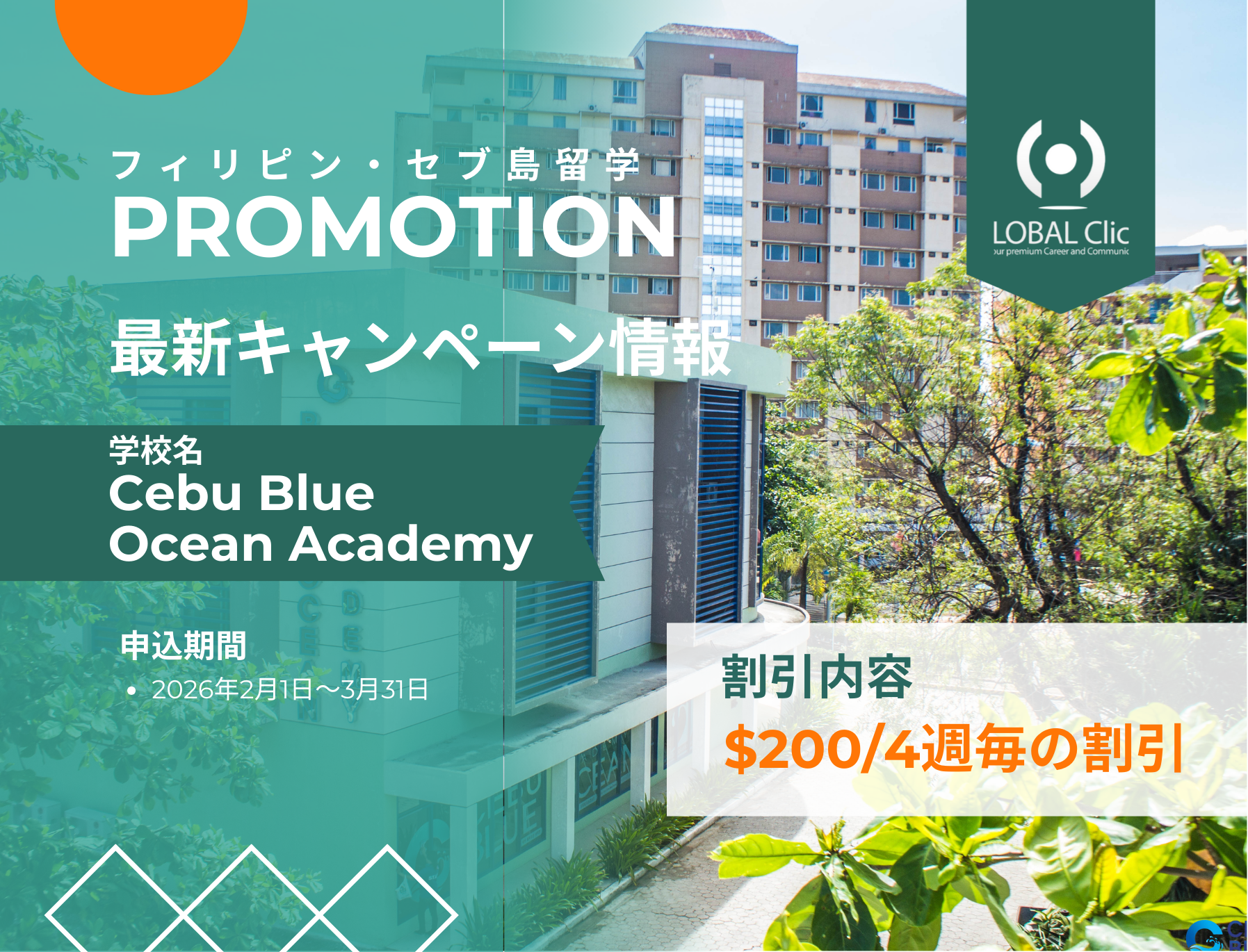2026年2月~3月のお申込み対象Cebu Blue Ocean Academyプロモーション